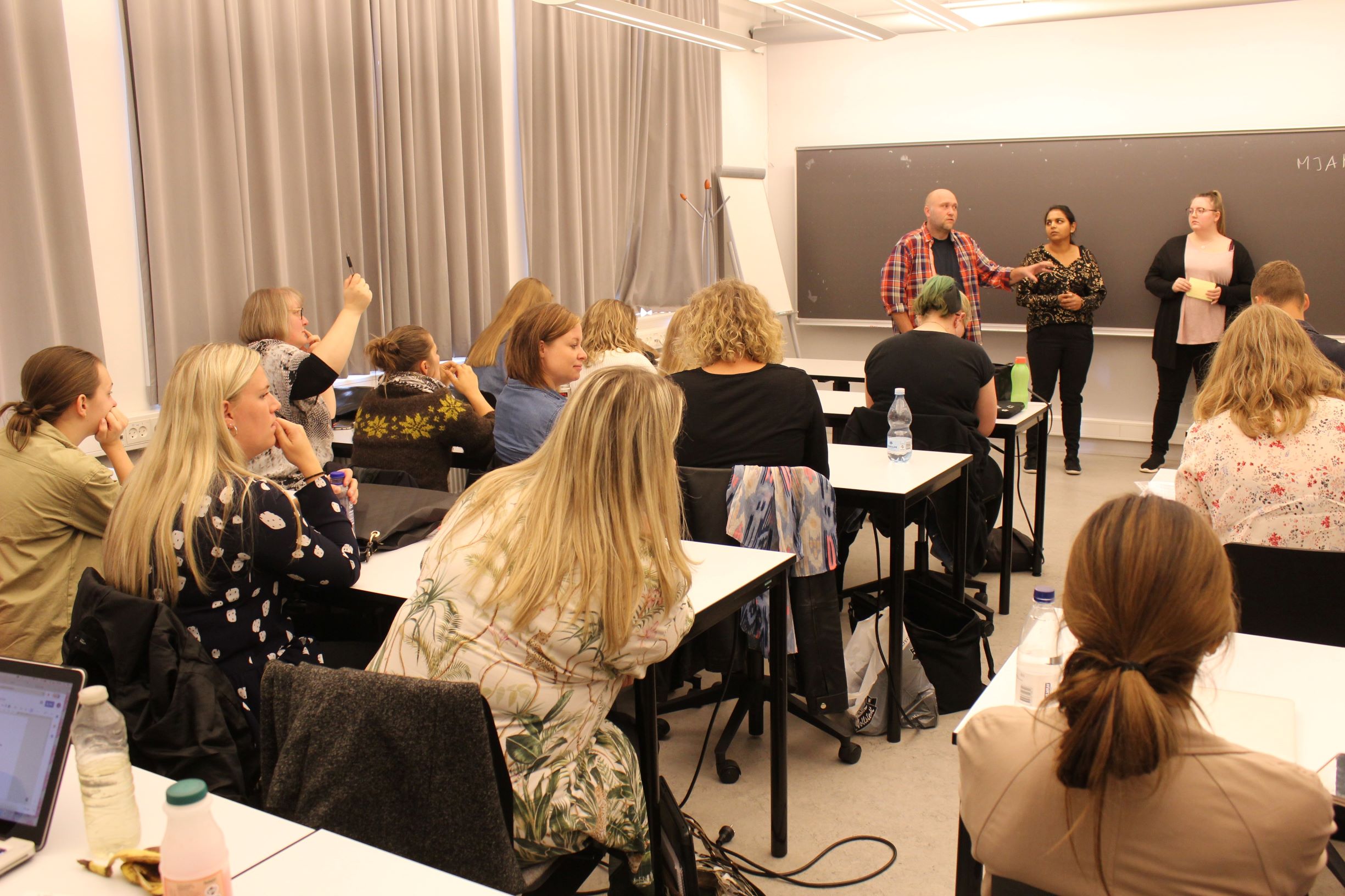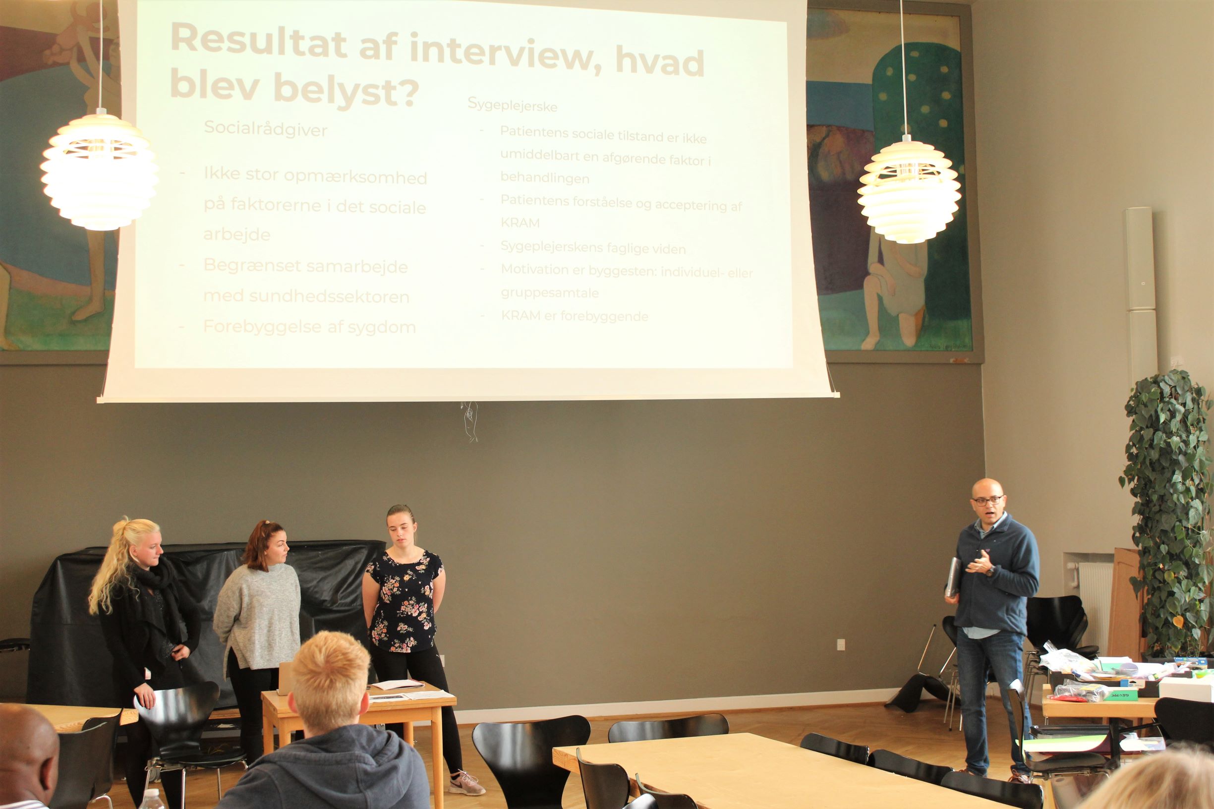 Fredag fremlagde de 160 studerende i 26 grupper deres forslag til, hvordan sygeplejersker, socialrådgivere, fysioterapeuter og andre professioner bedre kan hjælpe borgere ved at arbejde sammen. I grupper havde de studerende selv fundet frem til, hvilke problemer de ville sætte fokus på.